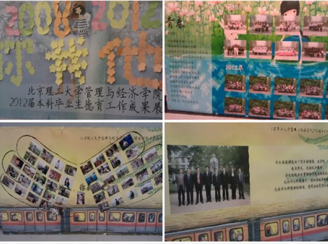 我院不仅利用新闻网站、社交网站等进行宣传和动员,还充分利用主楼尾楼的8块橱窗展示平台,将2012届毕业生的最新生活照片和对母校学院想说的话通过展板的方式展出,本次展出的主题是“管理与经济学院2012年本科毕业生德育答辩工作成果展”,主要展示了本次德育答辩工作所涉及的工作内容、工作成果,通过将学生想说的话和学院老师对学生的寄语的形式,营造了温馨、感人的毕业环境,展示了学生和学院之间的深厚感情。