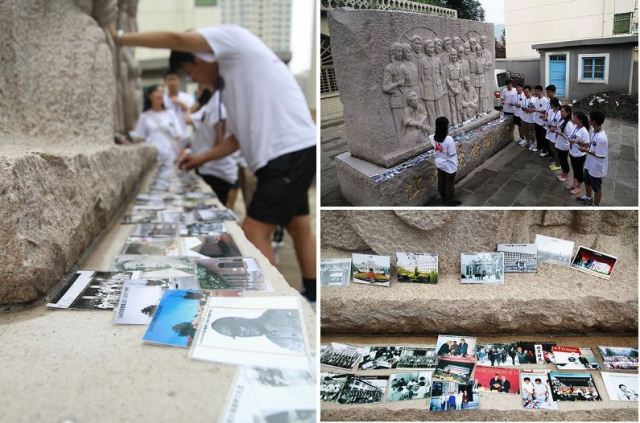 本次探访自然科学院遗址与以往不同,在出发前,经过实践团全体成员讨论研究,为了缅怀为学校建设发展做出贡献的先辈,将老校址参观和校史学习相结合,实践团在自然科学院遗址现场举行了“感怀理工起点 寄语百年北理”的主题教育活动。 队员们在纪念碑前摆出自北京带来的1940年以来的校史图片,由郭惠芝老师为担当讲解,结合校史图片详细生动的向全体队员们讲述了BB贝博72年来的历史变迁、杰出校友以及为国家建设做出的突出贡献。当承载着理工历史足迹的图片背靠着纪念碑,当72年的发展历程在自然科学院遗址上被娓娓道来,全体队员都被深深感动,在理工的起点上,回顾校史,正式对建校先辈们最好的告慰。