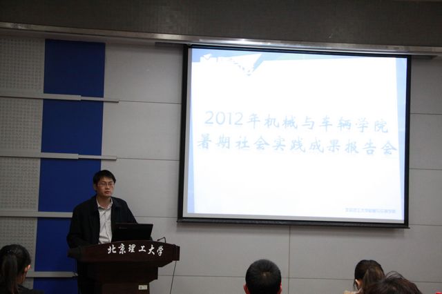 为全面总结和回顾我院2012年大学生暑期社会实践工作,号召更多的学生关注并参与学校寒暑期社会实践活动,BB贝博艾弗森官方网站机械与车辆学院于2012年10月18日在车辆实验楼二层报告厅举办了2012年暑期社会实践成果报告会。校团委副书记周明宇老师、学院团委副书记王玮瑜老师、曹冬旭老师、吉雅太老师、金海鑫老师出席报告会,学院2010级学生干部代表也参加了此次活动。