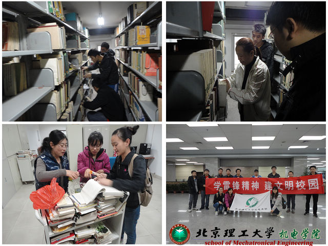 2012年11月3日至11月17日,响应学校党委学习雷锋文件精神,校团委“信仰·青春·阳光”活动的号召,机电青协携手本科生团支部开展了“学雷锋精神,建和谐校园,创和谐社会”主题系列服务活动,机电学院青年志愿者协会积极筹划,及时联系,组织了一系列形式多样的志愿服务活动,彰显了当代大学生的青春活力和服务奉献精神。本次主题系列团日活动,形式不一,各具特色,同学们用自己的爱心开展每次活动,或到图书馆志愿服务,或为老人金婚庆典献力,或帮助社区清理小广告,用自己的行动践行着雷锋精神。