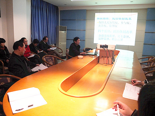 万小利重点就党的十八大通过的胡锦涛同志代表中共第十七届中央委员会所作的报告向与会人员作了传达和解读,并对全校深入学习贯彻党的十八大精神进行部署。