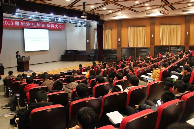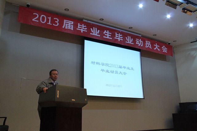 11月22日晚,材料学院在七号楼报告厅召开2012届毕业生就业动员大会。出席大会的领导老师有材料学院常务副院长刘颖教授,材料学院党委副书记副院长张舰月老师,团委委书记刘艳老师,招生就业工作处管帅华老师。另有相关负责老师及近300名2013届毕业生参会。