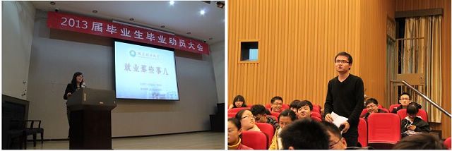 随后,招生就业工作处的管帅华老师就今年毕业就业的具体问题给大家做了分析和解说。包括2013年应届生的就业形势、求职的渠道有哪些、如何办理就业手续、关于户口、档案问题的解决及一些常见的小困惑。管老师通过具体的数据及实例分析出了具体的形势,并在最后解答了同学提出的问题。在管老师讲解结束之后,同学们对于毕业形势有了更清晰的认识,从后期反馈的情况来看,同学们的毕业准备的积极性有了明显提高。希望材料学院所有2013届毕业生都有美好的明天。
