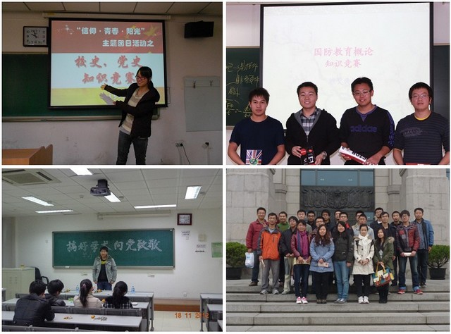 除了理论学习之外,各团支部还纷纷开展了形式多样的参观实践活动提升教育实效。2010级博士生各团支部开展了“搞好学术,向党致敬”活动。大家认真筹划,积极参与,开展了科技馆参观活动和学术交流活动,用博士生自己的方式向党致敬。2012级硕士1班团支部开展了“喜迎十八大,重走‘复兴之路’”的参观教育活动,使得大家深刻体会了前辈们为了中华民族的伟大复兴而作出的贡献和牺牲,更加意识到了所肩负的时代责任。2009级地面武器机动工程专业本科生团支部开展了“弘扬爱国精神,增强国防意识”国防知识竞赛,营造了有特色、有成效的国防教育氛围。