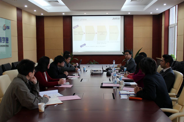 机械与车辆学院党委书记阎艳教授、科研副院长胡纪滨教授、院长助理冯慧华副教授、智能车辆研究所陈慧岩教授和胡宇辉老师出席接待会议,向客人简要介绍了我院的历史、现状和发展规划并赠送礼物。JATCO公司对学校和机械与车辆学院的热情接待表示感谢,并介绍了JATCO的生产及科研情况,表达了进一步开展合作的良好愿望。