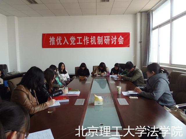 2013年3月21日,BB贝博艾弗森官方网站法学院召开推优入党工作机制研讨会。本次会议以学生推优入党工作研讨为中心,全面布置了新学期学生党建相关工作。参加本次会议的有法学院副书记副院长张巍、法学院团委书记聂宁宁和法学院良乡校区各学生党支部委员、各年级团支部学生干部,2010级本科生党支部书记罗月主持了会议。
