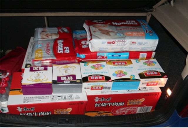打包完毕的所有赈灾物资