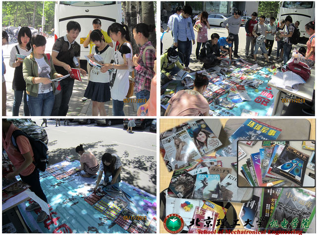 2013年5月11日中午,机电青年志愿者协会同北理绿萌资源与环境保护协会在新食堂篮球场边上成功举办了“图书漂借”活动。此次活动由机电学院青年志愿者协会主办,由北理绿萌资源与环境保护协会协办,协办方为此次活动提供了大部分的书籍。