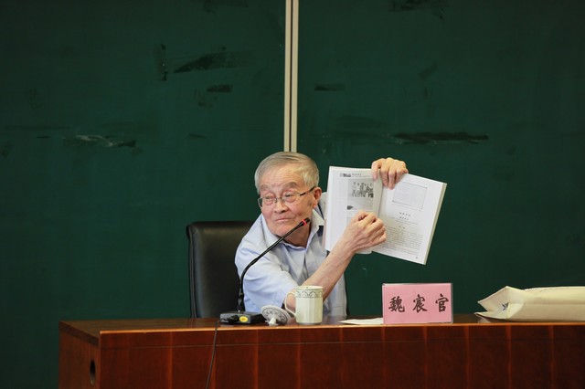 随后,魏老针对一些社会现象,为同学们讲述了“怎样把自己培养成一个有理想的知识分子”的问题。首先,要树立正确的人生指导思想,把每一分每一秒投入到充实自己、报效国家中来,这样才是有意义的人生。其次,要养成学习的自觉性和主动性。魏老从自身学习和科研中的一些轶事讲起,强调了做学问要有主动性,要有创新意识、有进取精神,这样才能在学习中有所成就。