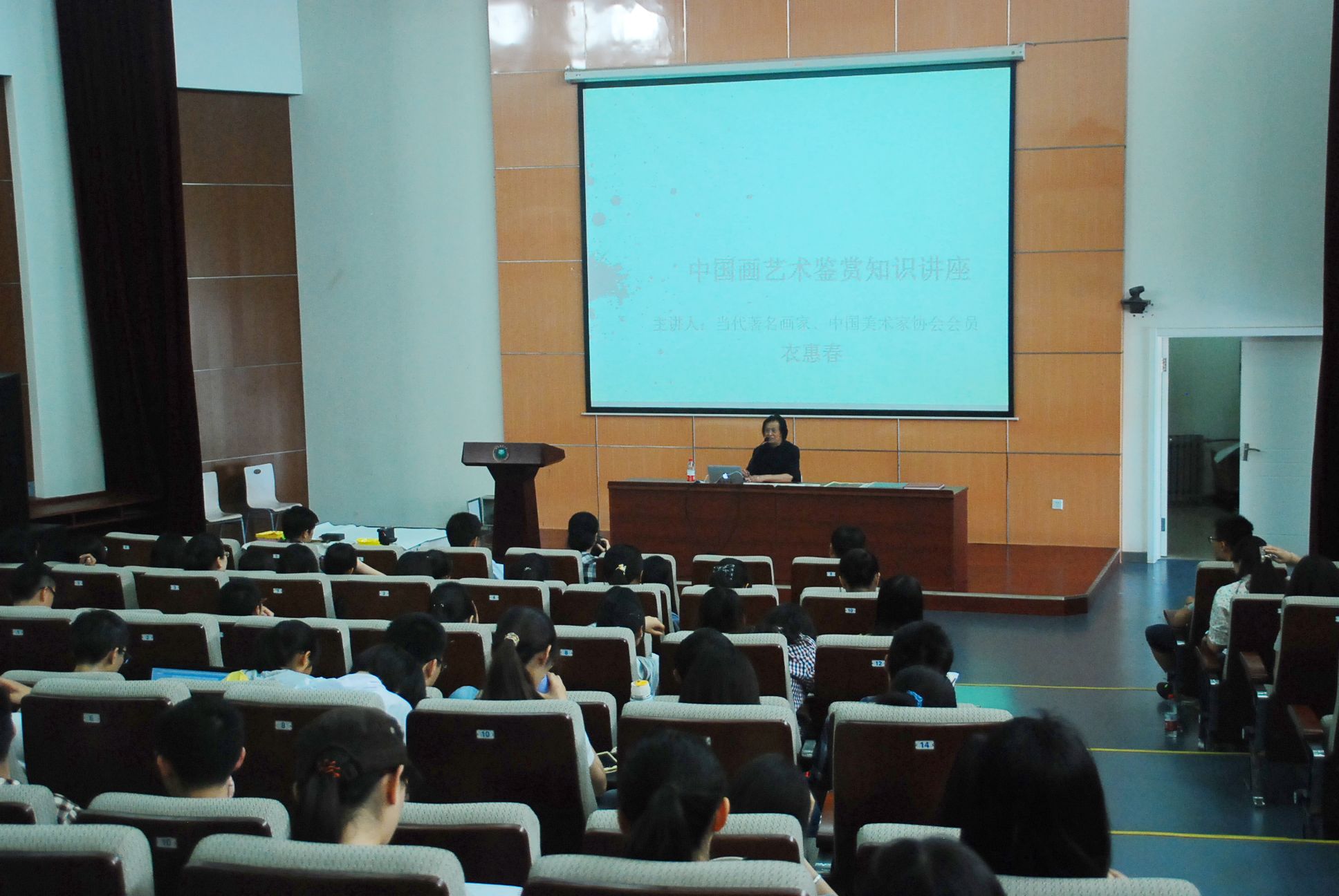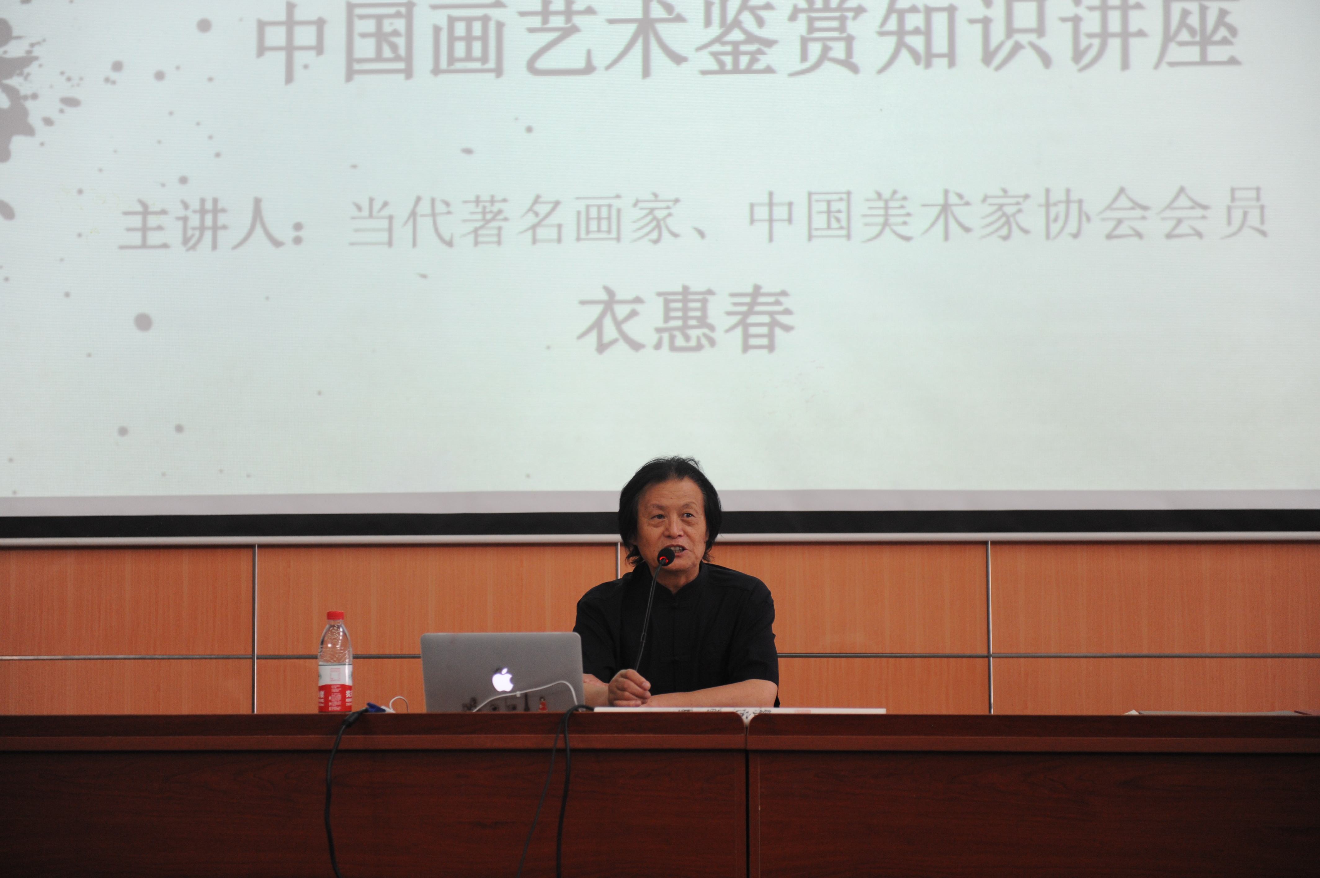 2013年5月14日下午,当代著名画家、中国徐悲鸿画院艺术委员会副主任衣惠春先生应北理工人文与社会科学学院邀请,在良乡校区综合教学楼报告厅为师生带来《中国画艺术鉴赏》书画艺术讲座。著名画家衣阳女士,人文学院党委书记张红峻教授,党委副书记、副院长徐贵宝老师与良乡校区两百多名师生共同聆听了此次讲座。讲座由人文学院团委书记孙硕老师主持。