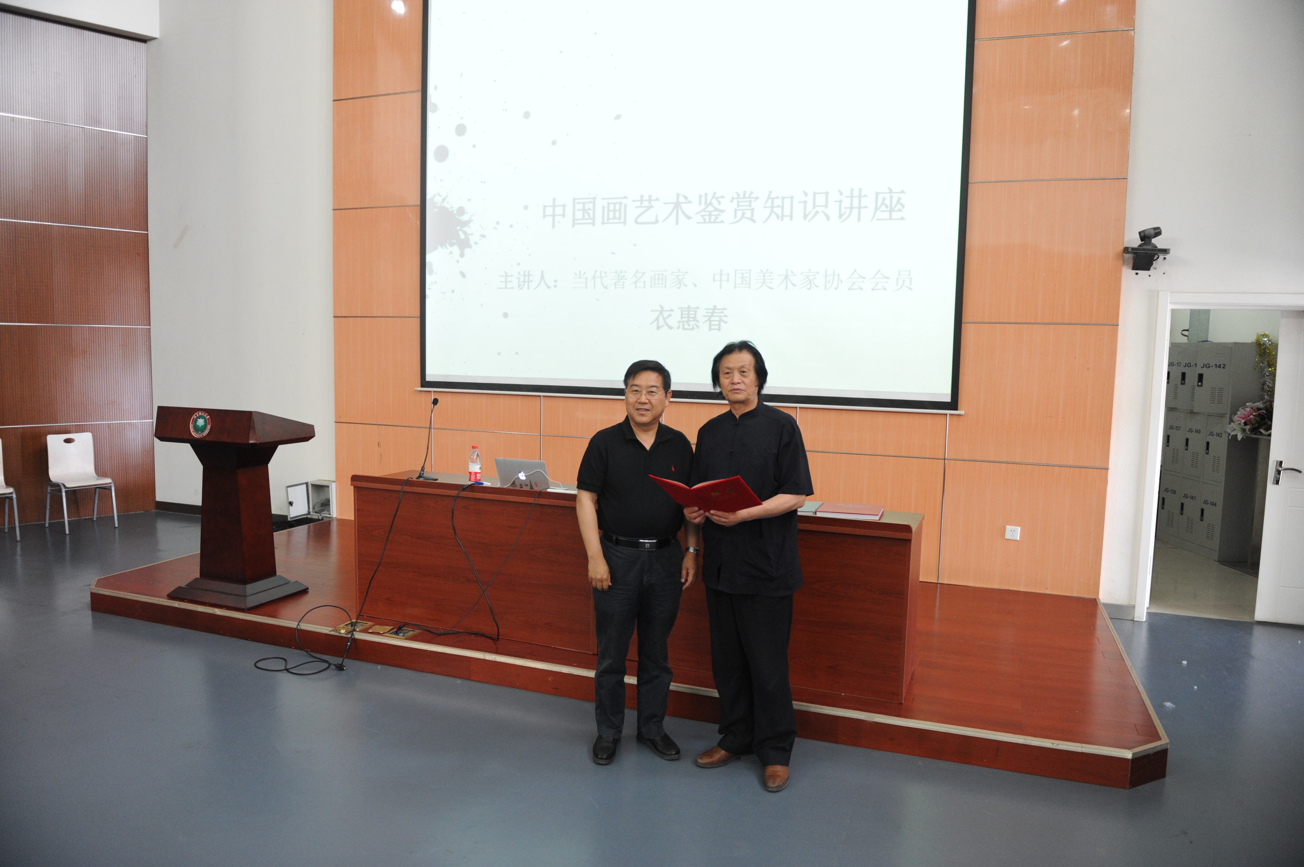 讲座开始前,人文学院党委书记张红峻教授向衣惠春先生颁发聘书,聘任衣先生为BB贝博艾弗森官方网站人文与社会科学学院艺术教育专家。