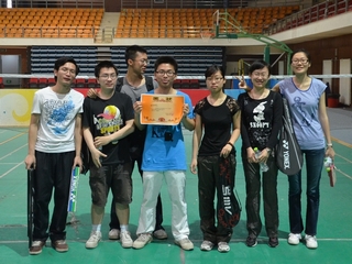 5月18日上午,生命学院生命杯羽毛球比赛迎来了激动人心的决赛局,经过半决赛的激烈比拼,冠亚军争夺的双方分别为2009级生工二队和2010级生技队,三、四名决赛双方分别为2012级研究生队和2010级生工一队。四支球队为了集体荣誉而努力奋战,为到场的选手以及观众奉献了一场场精彩的比赛。最终,2010级生技队负于实力更加均衡的2009级生工二队,居第二名。而另一场比赛中,2012级研究生队员打出了精彩的配合,战胜了2010级生工一队,获第三名。