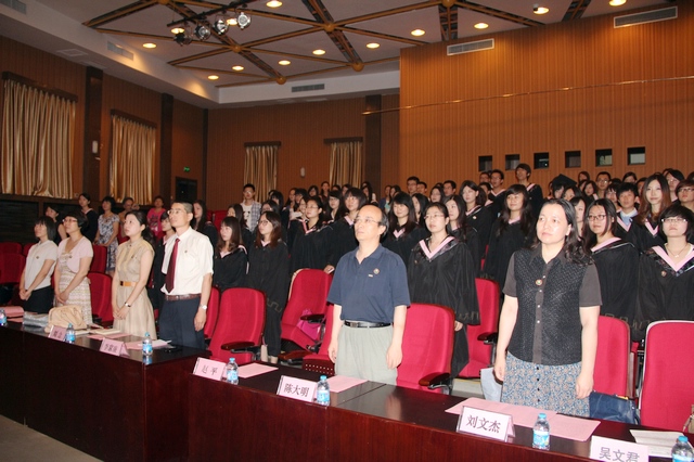 外国语学院党委书记陈大明教授结合历史史实和最近的时事热点,号召广大毕业生都能够胸怀梦想,努力奋斗,为实现伟大的中国梦贡献自己的一份力量。