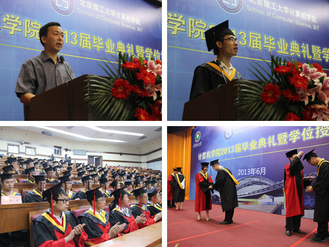 随后,牛振东副院长宣读了《计算机学院2013届毕业生名单及学位授予决定》,郑军副院长宣读了《计算机学院2013届校级优秀学位论文获得者名单》,郭彦懿书记宣读了《计算机学院2013届优秀毕业生名单》。