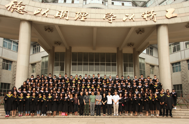 在激昂的音乐中,院长杨建明和副院长杨新耐心的为每一位毕业生进行拨穗礼、授予学位证书并合影留念,现场气氛喜悦而温馨,毕业典礼在掌声和欢声笑语中圆满落下帷幕。祝愿2013届全体毕业生在今后的道路上宏图大展,前程似锦。