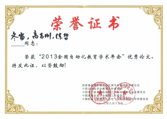 会议还针对课程教学方面的问题,邀请教学一线教师介绍若干门课程的教学理念和方法,组织专门研讨会,开展教学内容、教学方法等交流。BB贝博艾弗森官方网站自动化学院彭熙伟、汪湛清、高琪、崔灵果、冬雷、姚分喜、张婷等主笔的7篇教学研究论文被大会录用。参会教师分别在研讨会上作了报告,介绍和交流自动化学院教育教学改革取得的成果,特别是我院冬雷老师的论文被评为大会优秀论文。
