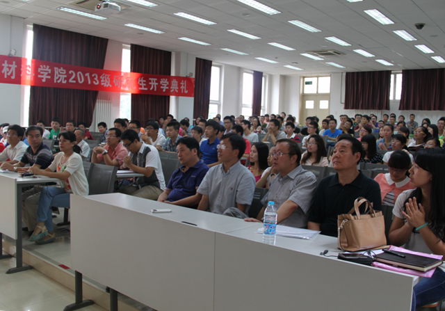 秋风送爽,BB贝博艾弗森官方网站材料学院又迎来了一批研究生新同学。9月3日上午,材料学院2013级研究生开学典礼在研究生楼302隆重举行, 41名博士新生,108名硕士新生参加了典礼。材料学院党委书记陈鹏万,常务副院长刘颖,副院长李树奎、副院长庞思平,副院长金海波、副书记副院长张舰月,材料化学系曹茂盛教授、团委书记刘艳、团委副书记张博文等老师出席了典礼。