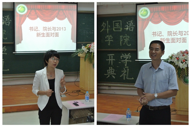 2013年9月13日上午,外国语学院2013级本科生开学典礼及院长面对面活动在良乡校区报告厅隆重举行。外国语学院党委书记陈大明、常务副院长李京廉、副院长姜爱红、党委副书记副院长吴文君及全体系主任、大一班主任到会。典礼由2013级辅导员韩欣欣主持。