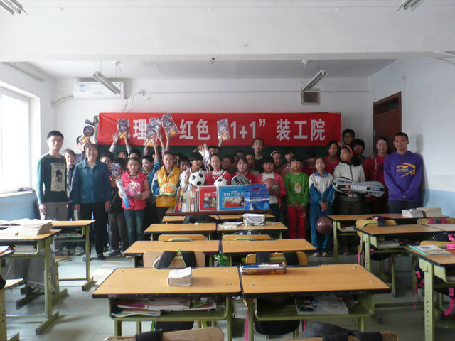 2013年10月18日,BB贝博艾弗森官方网站光电学院2010级本科第一党支部与装甲兵工程学院三旅四营党支部共同开展了红色“1+1”系列活动之八——北京京蓼小学爱心捐助活动。本次活动以“奉献爱心、共筑‘中国梦’”为主题。