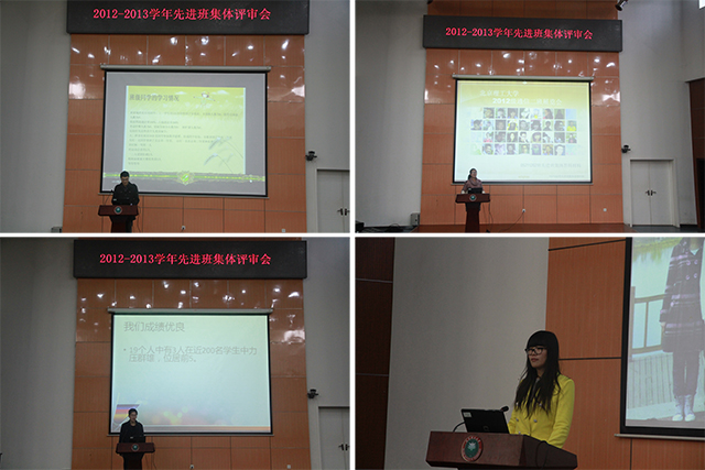 本次评审会共有38个班级申报,经班级代表答辩、评审会评选、学生工作部考核,共有25个班级荣获2012-2013学年先进班集体荣誉称号。