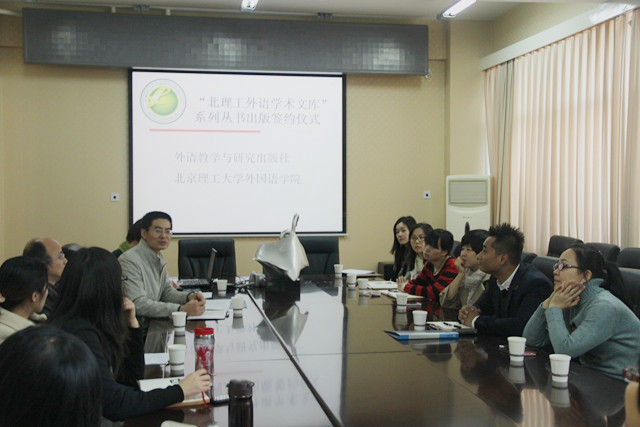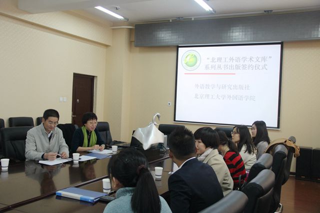 2013年11月22日上午,BB贝博艾弗森官方网站外国语学院与外语教学与研究出版社在中教515举行“北理工外语学术文库”系列丛书签约仪式。外研社高英分社副社长李淑静女士、编辑部主任孔乃卓先生等一行5人出席了签约仪式。外国语学院参加签约仪式的有常务副院长李京廉教授、党委书记陈大明教授、副院长姜爱红教授以及学院拟出版专著的作者。签字仪式由姜爱红副院长主持。