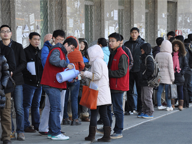 近期北京进入隆冬时节,天气寒冷,温度低至零下。招生就业工作处采取了为排队参会的学生提供热水,让同学们提前进入会场等举措,提供更加贴心、人性化的服务。
