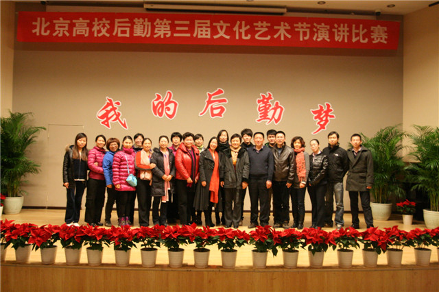 为加强北京市高校后勤思想文化建设,创建和谐后勤团队,展现后勤人对后勤服务工作的不懈追求和无私奉献精神。2013年11月27日下午,由北京市教委学校后勤处、高校后勤研究会思政专委会主办,BB贝博后勤集团承办的“我的后勤梦”北京高校后勤第三届文化艺术节演讲比赛在中关村校区七号楼报告厅举行。