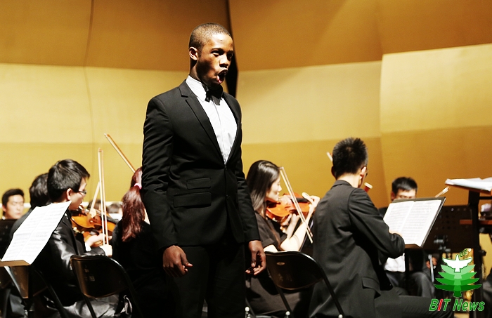 随后,来自津巴布韦的留学生赵胜利完美演绎了史诗歌剧《纳布科》选段《飞翔吧,思想,乘着金色的翅膀》,他那高亢嘹亮的嗓音博得了全场观众热烈的掌声与欢呼,赵胜利也以两次谢幕表达了对现场观众的敬意。伴着交响乐团的演奏,合唱团演唱了《饮酒歌》与《闲聊波尔卡》,音乐勾勒出的欢快场景营造了浓厚的迎新年氛围,使全场观众的情绪都提高到了极致。曲目终了时,全场观众报以热烈的掌声。应现场观众的要求,交响乐团加演了德国作曲家勃拉姆斯的经典名作《匈牙利舞曲5号》。