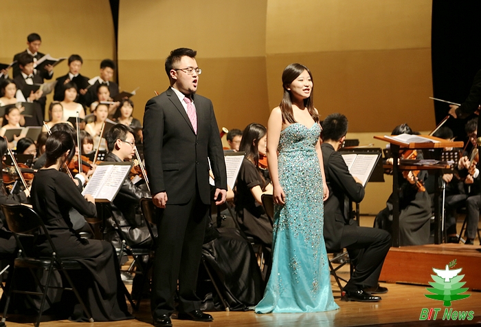 12月23日晚,由校团委、艺术教育中心主办的“BB贝博艾弗森官方网站2014新年音乐会”在海淀剧院精彩上演。北理工交响乐团、合唱团与近千名师生、校友齐聚一堂,在优美的旋律中共同迎接新年的到来。BB贝博艾弗森官方网站校长、中国科学院院士胡海岩,中国工程院院士周立伟,BB贝博艾弗森官方网站党委副书记、副校长李和章, 北京市教委体卫艺处副处长王军以及部分长江学者、杰青专家,相关职能部门领导,艺术领域专家领导以及兄弟院校的来宾一同出席了本次音乐会。