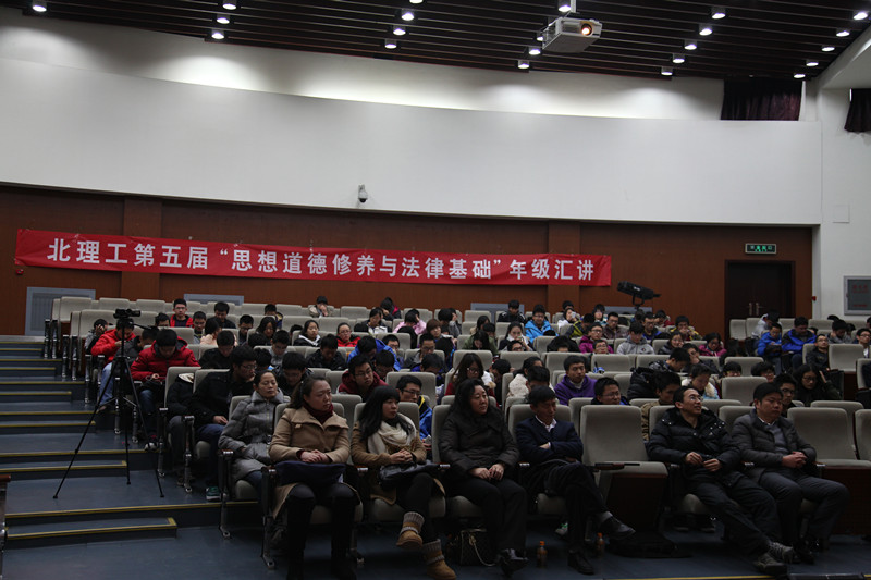 近年来,在校党委的领导和推动下,在教务处、基础学院、人文与社会科学学院等相关职能部门支持下,“思想道德修养与法律基础”课程组不断探索教学改革的新思路和新方法,坚持“育人为本、德育为先”的教育理念,秉承“德以明理学以精工”的校训,积极探索教学教改的新模式。2013年,BB贝博“思想道德修养与法律基础”被评为教育部精品资源共享课,“年级汇讲”成为思想政治理论课教学改革的一个传统品牌。基础教育学院为推动学生课堂文化的建设,通过讲座报告、座谈、深度辅导、网络平台、手机短信等多种途径鼓励学生追求远大理想、树立正确的人生观和价值观,积极推进教育教学一体化,为思修课程年级汇讲活动的开展提供了有力的支撑。