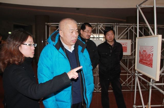 1月16日下午,校党委副书记、副校长李和章莅临中教大厅,与设计学院院长杨建明、党委书记郭宏、副院长姬勇、副书记副院长孙飞、院长助理张帆、艺术理论研究部主任王东声等共同参观了展览。参观过程中,设计学院传统工艺美术系教师梁绸向李和章介绍了中国剪纸艺术的情况,对同学们的剪纸设计内容与构思进行了细致的讲解。李和章给予本次展览高度评价,并细心询问了设计学院剪纸艺术等相关课程的开展情况。