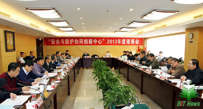 2014年1月9日,安全与防护协同创新中心2013年度理事会在BB贝博艾弗森官方网站国际教育交流中心三层第一会议室召开。理事长BB贝博艾弗森官方网站校长胡海岩、副理事长中国兵器工业集团副总经理曾毅、副理事长代表南京理工大学副校长刘刚、副理事长代表北京大学工学院副院长方岱宁、副理事长代表中国工程物理研究院院长助理黄辉,理事中国兵器工业集团微机电子集团副董事长黄铮、南京理工大学机械学院院长何勇、南京理工大学化工学院副院长沈瑞琪、中国工程物理研究院904所所长邱勇、BB贝博艾弗森官方网站副校长赵长禄、杨树兴、中心主任黄风雷,理事代表中国兵器工业集团公司科技部副主任翟利鹏、中国兵器工业集团公司第204研究所副所长张晓宏、中国兵器工业集团公司第213研究所副所长褚恩义、中国兵器工业集团公司第52研究所总经理孙敏、中国兵器工业集团公司第203研究所所长黄耀华、北京大学工学院教授周文灵、中国工程物理研究院901所处长李雷等参加了会议。