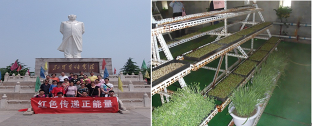 5月21日,两党支部开展了参观“红星农场”活动。在布满毛泽东主席诗词、图片的文化墙前,党员们驻足浏览,品读交流,感叹今天幸福生活来之不易。学生党员们还学习和体验了芽苗种植,用自己的双手和汗水去感受劳动的快乐。