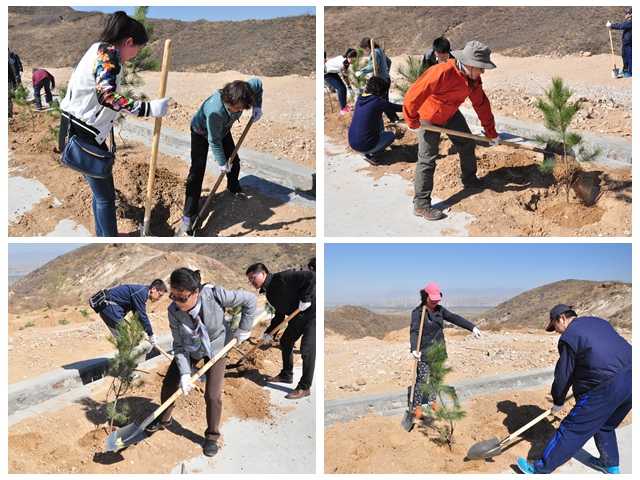 。。学院师生响应习总书记的号召,积极参加此次植树活动。现场气氛热烈,热情高涨,师生们相互配合,干劲十足。师生们劳作的身影和路旁渐渐立起的一排排树苗形成一幅美丽的画面。共完成油松树苗种植500余株。