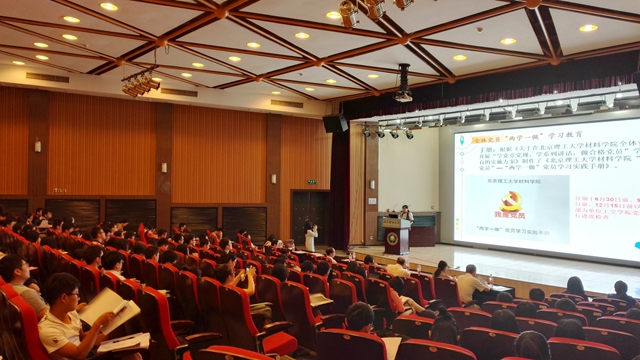 2016年5月26日,材料学院在七号楼报告厅举行了“两学一做”工作推进会,并由材料学院党委书记张青山同志为全体党员上了一堂“我的祖国我的党”——“两学一做”专题党课。