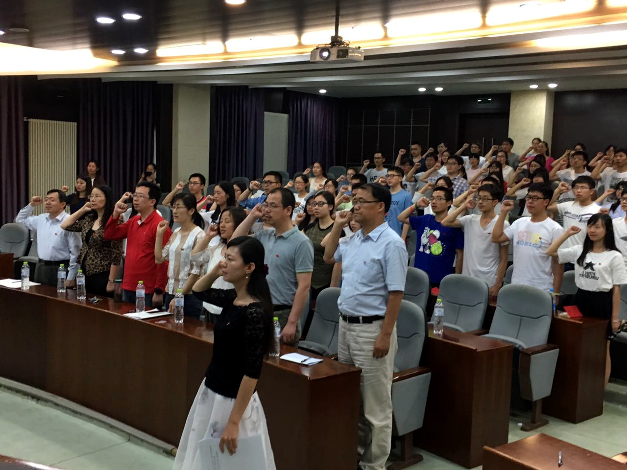 全体参会党员面对鲜红的党旗,再次重温入党誓词,庄严地宣誓再次提醒全体党员不忘初心,牢记使命,勇担责任,服务国家。