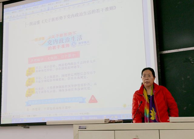 学院高等教育研究所党支部书记郜岭老师讲了“两学一做”专题党课。郜岭老师以“敬业修德、教书育人、做合格党员”为主题,结合自身的学习与从教经历,与全体党员师生分享了一名好教师、一名好党员的心路历程。