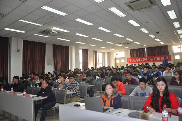2016年12月3日下午,机电学院于研究生楼302教室开展了“两学一做——忠党爱国,严己立德”主题党课,学院党委书记王伟主讲,副院长、副书记陈军,学院全体辅导员,150余名入党积极分子及学生干部参加了活动。