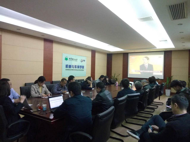 在集中收看十九大开幕会盛况后,按照学校统一部署,学院在第一时间认真组织师生开展讨论,掀起学习贯彻十九大精神的热潮。 机械与车辆学院党委组织师生党员群众认真学习研讨,深刻认识和把握大会报告的精神实质和丰富内涵,贯彻落实好大会报告提出的各项任务,全院上下将思想和行动统一到党的十九大精神上来,掀起学习宣传贯彻党的十九大精神的热潮。
