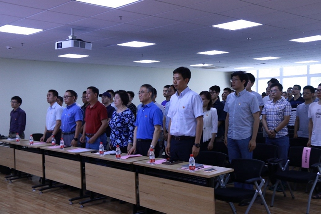 全体人员面向党旗,庄严宣誓,重温了入党誓词。