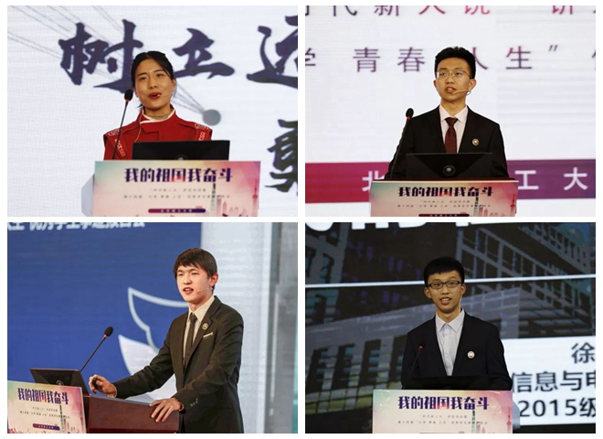 本次报告会邀请了4位在学术科研、课外竞赛、学生工作、社会实践等方面有突出成绩的优秀学生讲述他们的青春奋斗故事。6位参与国庆70周年庆祝活动任务的学生,代表参与国庆各项任务的北理工师生,分享了他们爱国报国的难忘经历。
