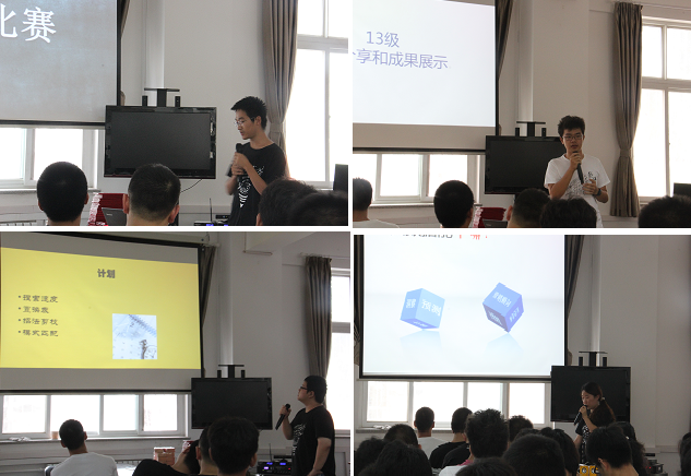 在本次总结表彰大会上,首先管理中心为大家介绍了本次暑期集训的整体情况和开展的各项文体活动。接下来,各实验室代表汇报了实验室集训期间的技术培训成果和项目进展情况,并介绍了实验室文化氛围的建设以及集训心得。精彩的作品展示和充满激情的发言赢得了在场老师、同学们的阵阵掌声。