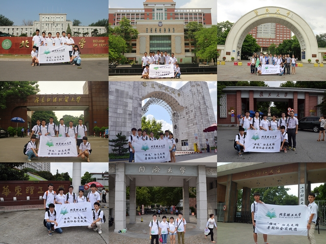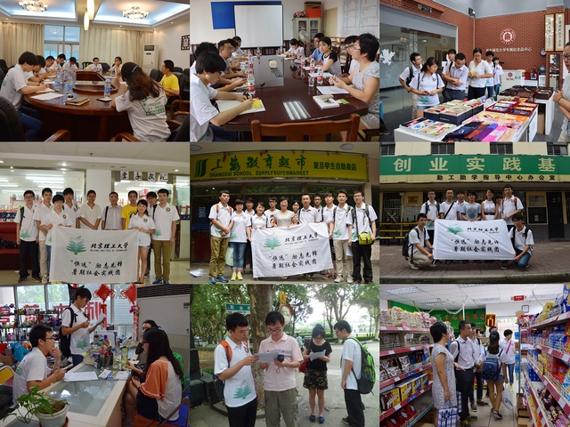 7月17日,“恒远•励志先锋”暑期社会实践团第一组的同学到达了华南师范大学,参观了勤工助学中心并与相关负责老师和学生骨干召开了座谈会,会后参观了中心的职能部门办公室并与值班人员交流;次日,实践团到达暨南大学,勤工助学管理委员会相关老师和学生对本校勤工助学管理委员会的构成、运作、发展方向等情况做了充分介绍,并带领实践团参观了勤工助学的各个实体店;最后,实践团到达广东外语外贸大学,参观了勤工助学中心的各项实体店,如咖啡屋、书报亭、健身房、爱满屋等,并在校园内发放了调查问卷。
