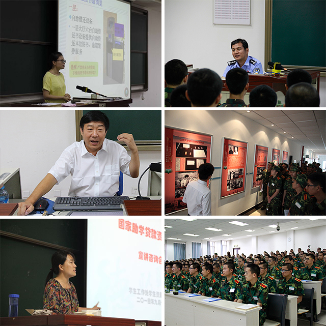 根据学校2014年新生入学教育相关工作的整体安排,在军事理论培训期间,军训旅组织学员参加各项新生入学教育活动:图书馆资源使用培训、校纪校规教育和交通安全培训旨在帮助学员尽快熟悉校园环境,完成高中向大学的转变,为大学四年的学习和生活打牢根基;校史专题讲座、校史长廊参观活动旨在引导学员了解北理工光荣历史,增强学员对学校的认同感,提升学员爱校荣校的主人翁意识;资助政策宣讲会为学员全面介绍BB贝博学生资助政策体系,为学员融入校园、安心学习提供良好基础和便利条件;传统文化教育意在引导学员继承和弘扬中华民族优良传统,成长为有素养、有内涵的,优秀的北理工人。