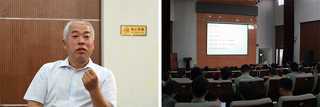 军事理论培训分为军事理论课讲授和观看军事纪录片两部分,充分调动学员积极性,打实国防知识基础,强化学员国防安全意识,提高学员思想觉悟。军事理论课由国防大学教授主讲,分为十讲授课,内容包括中国周边安全环境、信息化战争、美国军事战略、外国军事思想、中国武装力量、军事高技术概述、中国国防、中国古代军事思想、毛泽东军事思想和邓小平新时期军队建设思想等。主讲教授讲解细致、语言生动,旁征博引、深入浅出,为学员系统全面地讲授国防知识。参训学员虚心学习、认真记录,积极与教授互动,课堂气氛和谐融洽。军事纪录片共分两天放映,分别为《军工记忆》之“水下长征”、“金戈铁马”、“豹啸长空”和“东风破晓”四部分,较为全面地介绍了我国军工历史和装备发展。装备研发背后的故事可歌可泣、催人奋进,在引领学员了解我国军工发展历程的同时,增强学员国防意识,激发学员的忠党爱国情怀。