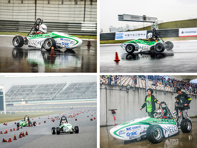 虽然首个进入动态项目,却略遇不顺。11月的上海,阴雨绵绵,赛程中一直伴随着小雨,湿滑的赛道不仅影响赛车的性能发挥,也给赛车手的驾驶增加危险性,带给车队巨大的挑战。而此时已有数辆赛车因雨水渗透引发故障,赛车动力中断或无法启动,导致退赛。但BB贝博经验丰富的赛车手和银鲨稳定的赛道表现,在最后的雨战中以几乎零失误(包括脱离赛道、撞桩筒等)顺利完成了21公里的耐久性测试。加之轻量化的赛车设计,也让银鲨赛车在经济性测试中得到了满分。