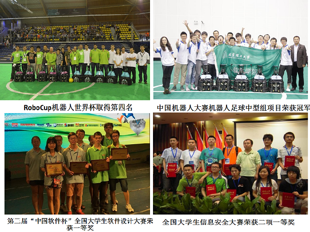 八年来,基地建设学生创新实践专用场地近600平方米,投入专项经费数百万元,添置各类软硬件设备百余套,组织学生积极参加国内外各类创新实践竞赛,共获得省部级以上科技竞赛奖励1557人次,其中国际级152人次、国家级1290人次、省部级115人次,先后包括国际机器博弈锦标赛金牌、中国机器人大赛特等奖、全国信息安全大赛一等奖、全国“挑战杯”大学生课外学术科技作品竞赛一等奖、全国机器人大赛机器人足球中型组冠军等重量级奖项。