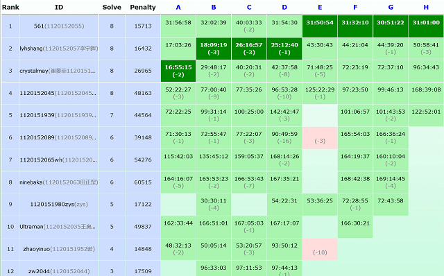 本学期针对2015级学生的算法培训工作预计共12周:其中前8周为基础算法的学习,后4周是对前8周所学习的算法巩固与提升。前8周讲授的基础算法包括DFS、BFS、二分法、贪心算法、DP、最小生成树、最短路以及树状数组共计八个专题。每个专题由两名大学生科技创新创业基地算法艺术学生创新实验室的2015级优秀学员授课,每个专题历时一周。截至目前已进行七周,开展情况顺利。