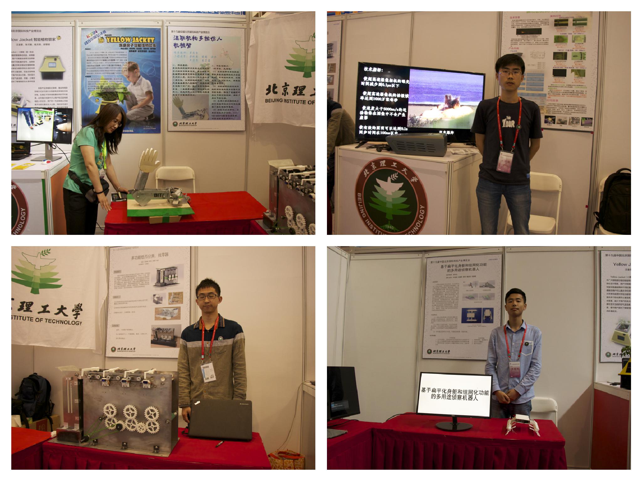 编辑:机电 章涛 审核:肖雄 杨瑞伟 阅读次数:2016年5月19日至22日,以“创新超越,引领未来”为主题的第十九届中国北京国际科技产业博览会在中国国际展览中心隆重开幕。应组委会和团市委邀请,机电学院本科生研制的“yellow jecket智能职务管家”“自适应肌电语音混控仿生灵巧手”等7项科技作品代表BB贝博艾弗森官方网站参加了此次 “科博会”,在“首都青年科技创新创业成果展区”中展示。