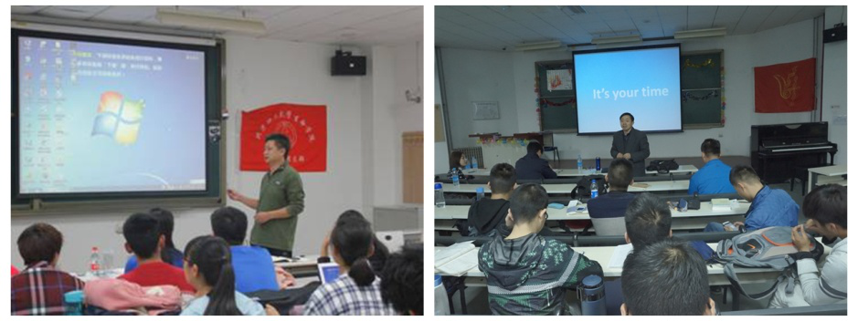 160211501班将答辩地点设在风景宜人的北湖湖畔,接近大自然打开心扉,同学们结合《致青春》的读书感受,总结了这一学期以来的得失,分享了个人感悟,并表达了对未来的憧憬。16021502班以《中国合伙人》影片为切入点,每位同学结自身情况对大学的理想和目标进行了阐述与规划。16021503班以同学们自导自演主题短剧作为线索,生动展示了大学中从军训、上课、考试、考研到就业时可能遇到的困难和挫折,成为德育开题答辩的一大亮点,寓教于乐。16021504班以“家在心中,梦在远方”为主题,加入了“相知相守”自制视频日志,纪录了班级活动的点点滴滴,营造了良好的氛围。